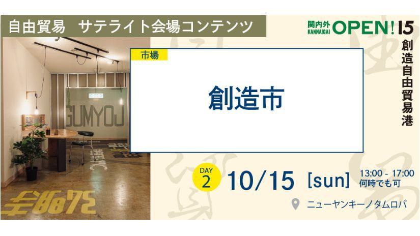 関内外 OPEN! は 2009年にはじまった、横浜・関内外エリアを中心に活動するクリエイターのネットワークから生まれるイベントです。 開催15回目のテーマは≪創造自由貿易港≫。
