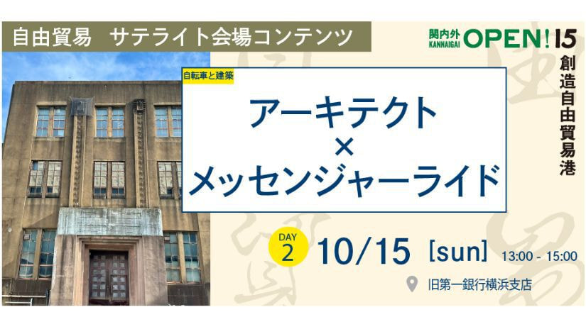 建物と人に会いに行く、関内外OPEN!ならではのサイクリング・ツアー。建築家とメッセンジャーが街を案内し、異なる目線で街や建築、クリエイターの働き方を見る2時間。